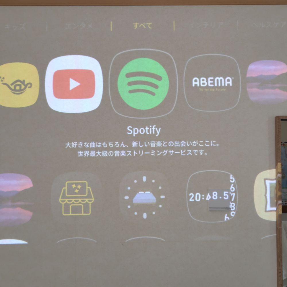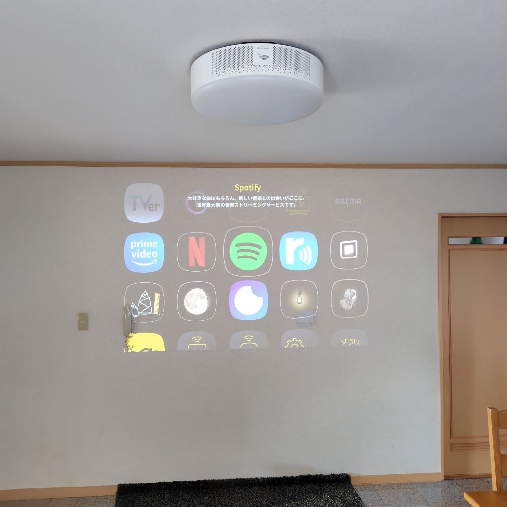 天井に設置して、壁に映すタイプのプロジェクターです。